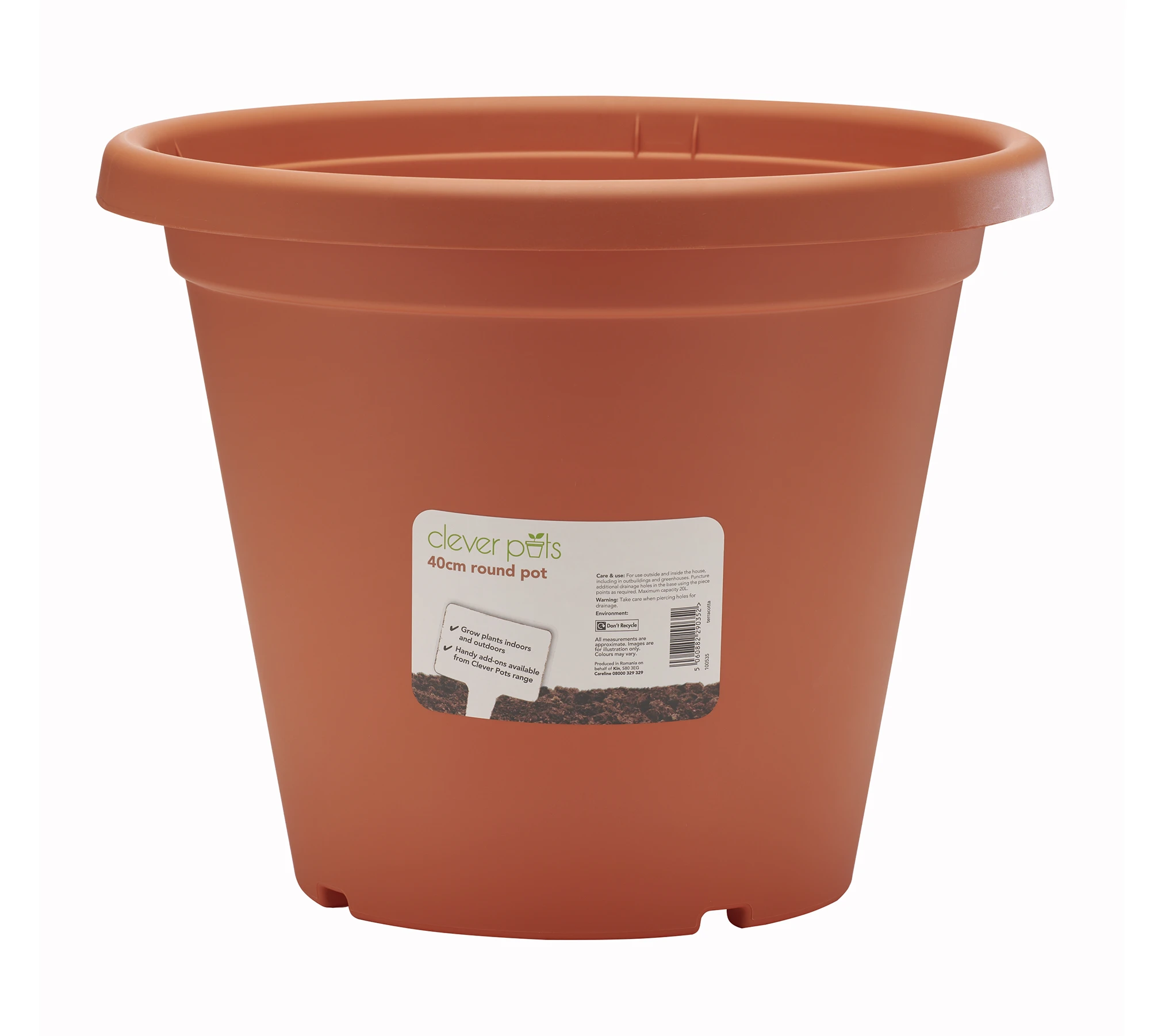 Dieser runde 40 cm Pflanztopf von clever pots ist aus leichtem, witterungsbeständigem Kunststoff gefertigt und eignet sich daher perfekt für den Außenbereich. Der Topf hat einen breiten Rand, der das Aufheben und Bewegen erleichtert, und kleine Füße, die die Luftzufuhr zu den Pflanzenwurzeln für ein gesundes Wachstum ermöglichen. Dieser Topf besteht zu 30 % aus recyceltem Kunststoff und ist recycelbar. Außerdem ist er UV-farbbeständig, langlebig und wiederverwendbar.
