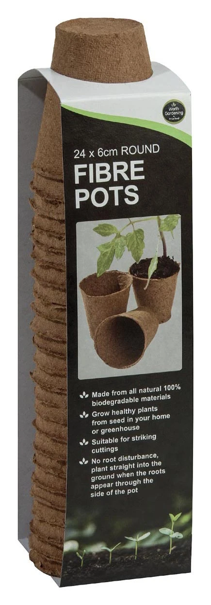 Dieser Artikel enthält 24 und 96 runde Fibre Pots mit einem Durchmesser von 6 cm.