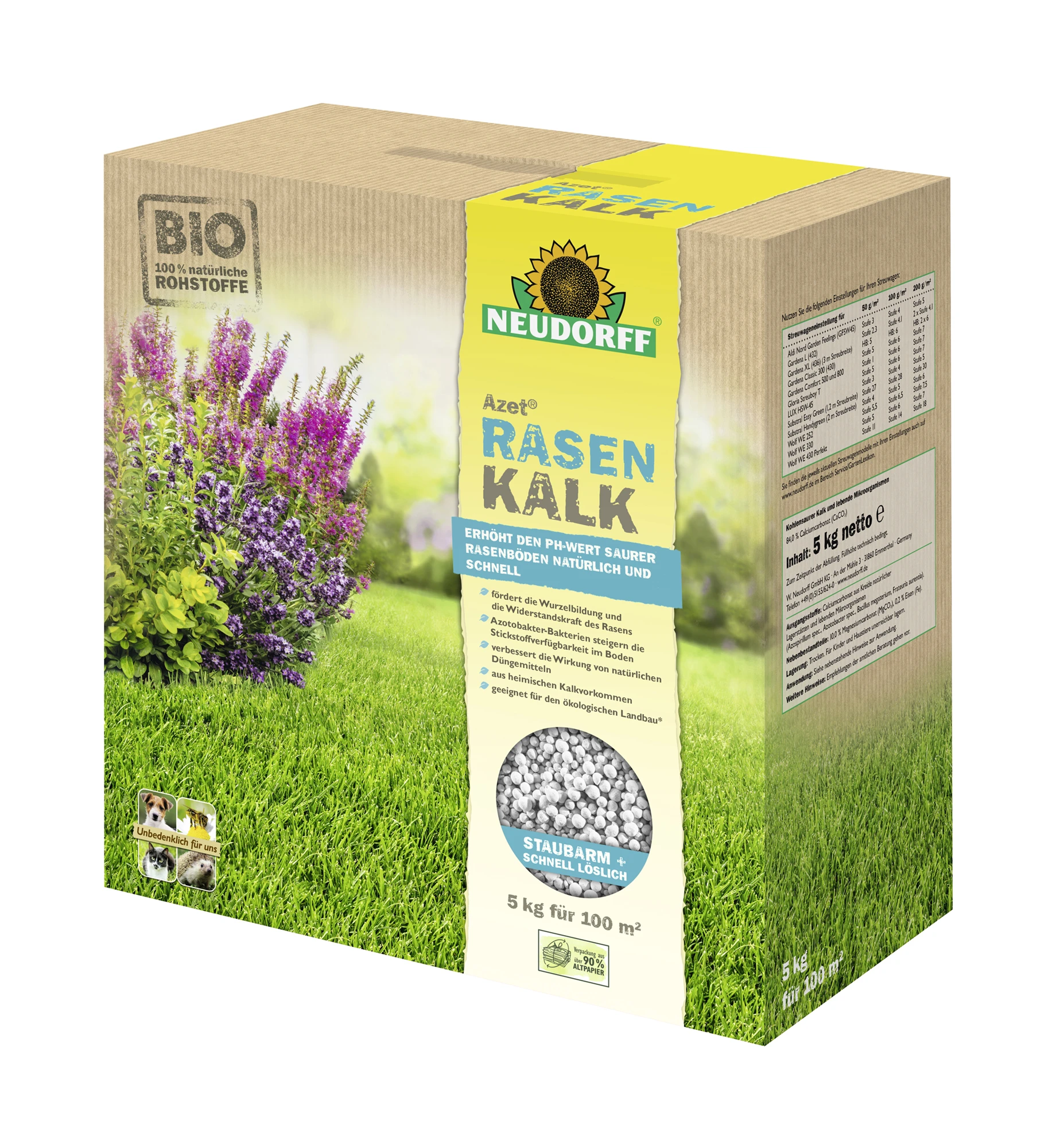 Kohlensaurer Kalk (84 % CaCO3 und 10 % MgCO3) mit Magnesium und Eisen mit lebenden Azotobacter Bodenbakterien, die die Wurzelbildung und das vitale Wachstum der Pflanzen fördern. Reguliert den pH-Wert. Keine verbrennende Wirkung. Aus natürlichen Rohstoffen. Unbedenklich für Mensch und Tier.