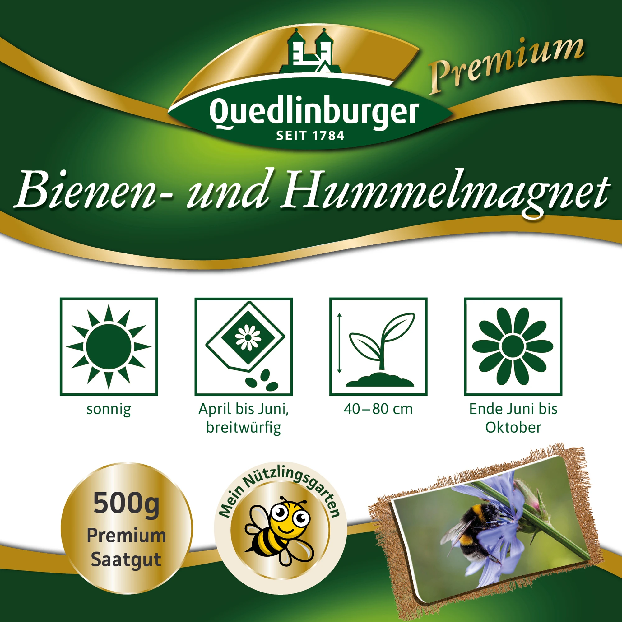 Die Saatmischung „Bienen- und Hummelmagnet“ blüht ca. ab Ende Juni bis Oktober.