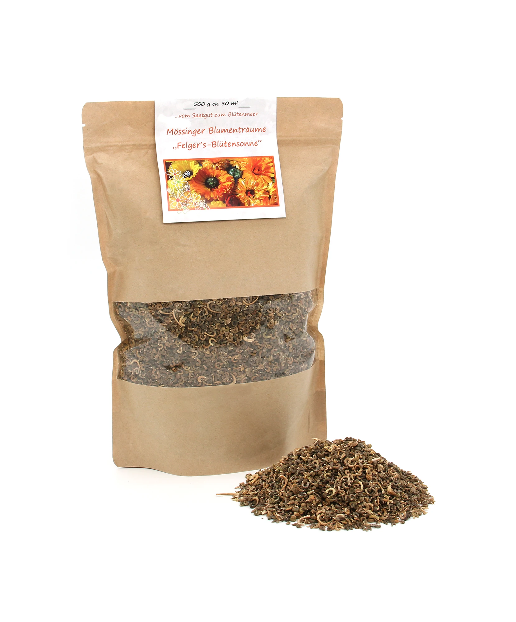 Unsere einjährig wachsende Ringelblumen – Samenmischung enthält eine besondere Auswahl von sieben einfach und gefüllt blühenden Sorten / Auslesen, die von cremegelb bis tieforange, mit zum Teil dunkelbrauner oder heller Mitte blühen.