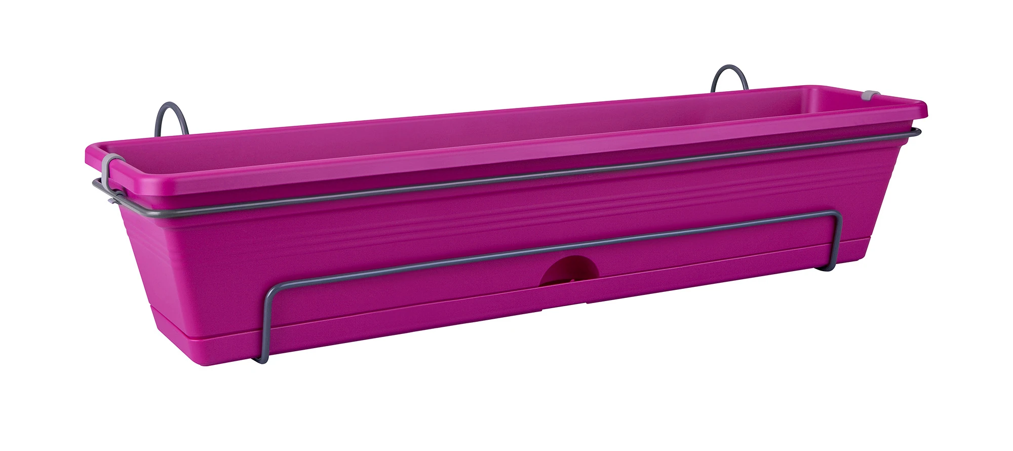 Ein klassischer Balkonkasten aus recyceltem Kunststoff mit einem dazu passenden Metallhalter. Und das alles in einem! Der Kasten vereinfacht sogar die Bewässerung – die Vorderseite ist mit einer Öffnung zum Gießen versehen. Falls einmal zu viel Regen fällt, wird das überschüssige Wasser im Untersetzer gesammelt. Sich an den Blumen auf dem Balkon zu erfreuen, war noch nie so einfach. Tipp Berücksichtigen Sie bei der Bepflanzung die Sonnen- und Schattenseite des Balkons.