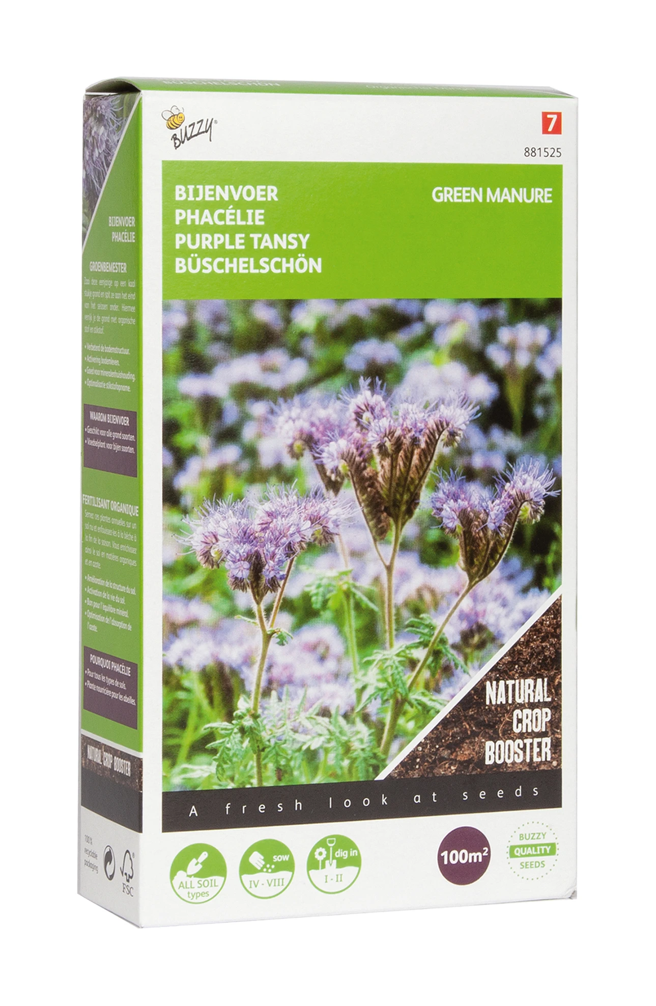 Phacelia oder „Bienenpflanze“ eignet sich für alle Bodenarten und ist eine schnelle Bodendecker. Liefert viel organische Substanz, die in nährstoffreichenHumus umgewandelt wird. Phacelia ist nicht winterhart und friert zu Beginn des Winters ein. Dann lässt es sich leicht untergraben.