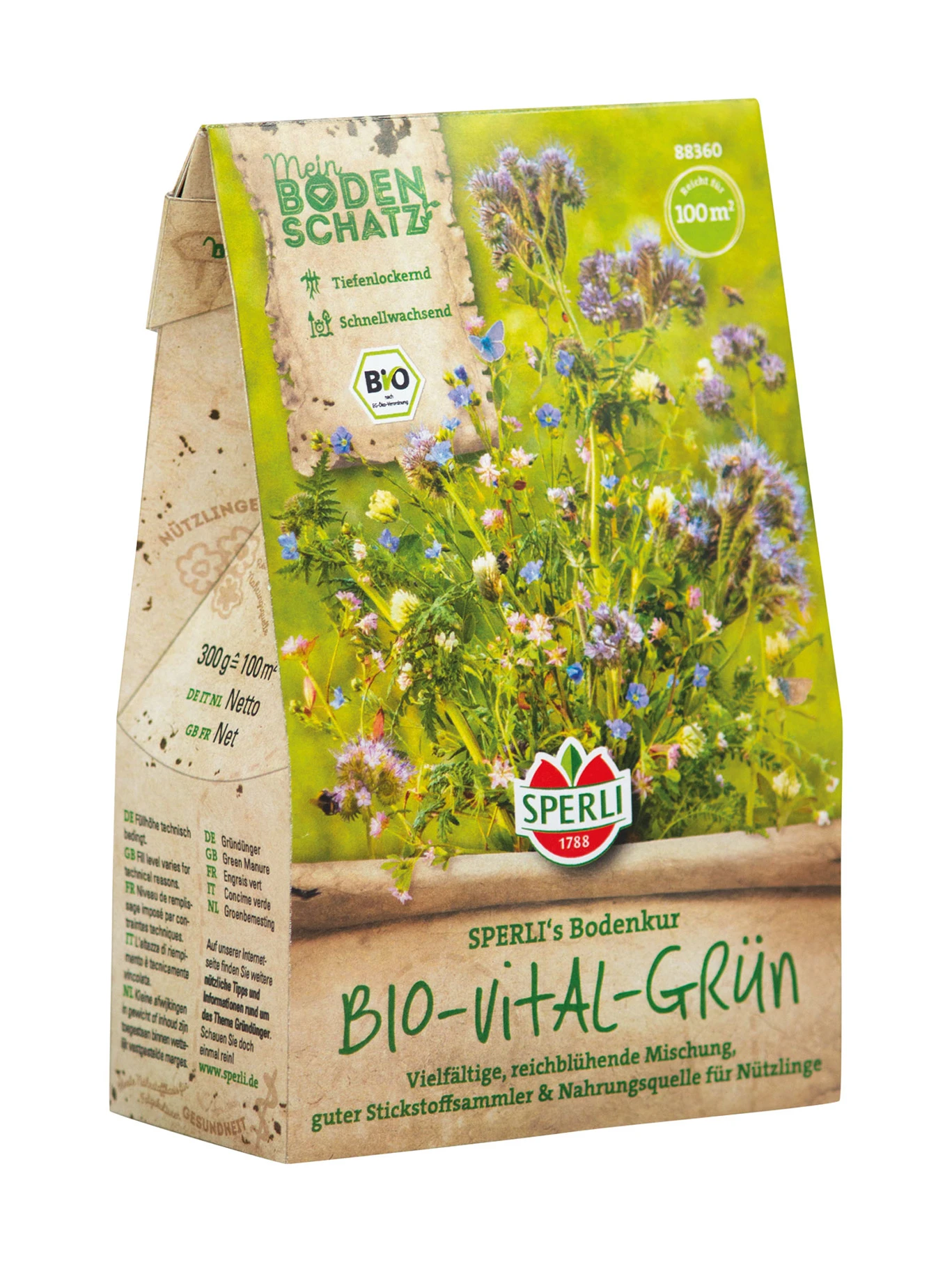 SPERLIs BIO – Vital – Grün für die natürliche Gesunderhaltung des Bodens. Die einjährige Mischung ist sehr vielfältig und raschwüchsig. Durch die tiefe Durchwurzelung entsteht für Folgekulturen eine ideale Basis für gutes Wachstum. Durch den hohen Anteil an Feinleguminosen wird zusätzlicher Stickstoff gebunden und für Folgekulturen bereitgestellt. Die rasche Bodendeckung schützt vor Austrocknung und Bodenerosion. Bei überdüngten Böden kann die Mischung als Stickstoffregulierer eingesetzt werden. Sie ist eine gute Nahrungsquelle für Nützlinge.