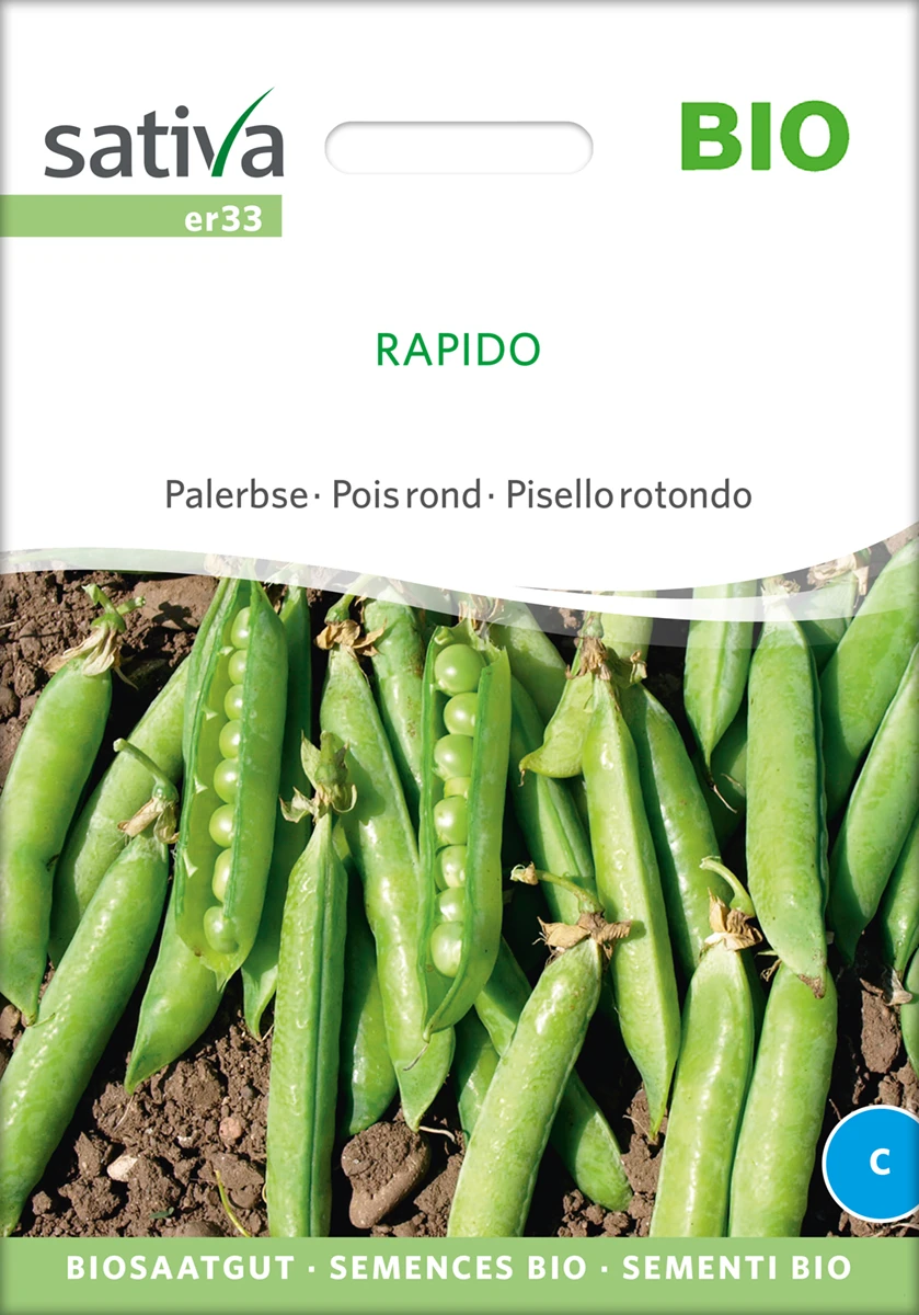 Palerbse für frühe Ernte. Rasche Entwicklung. Weissblühend.