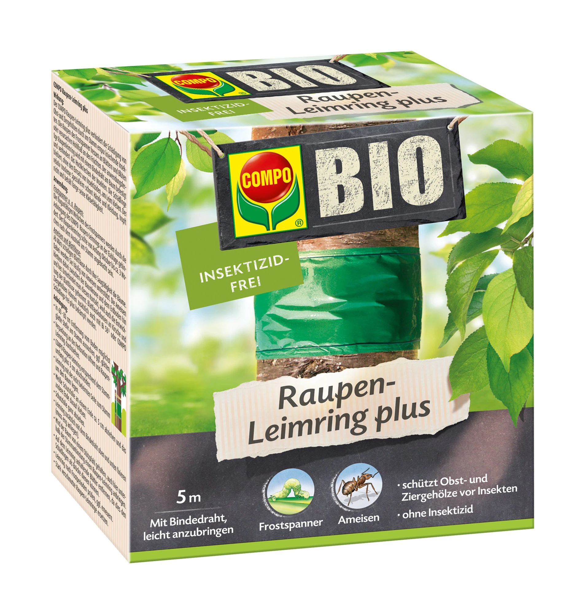 Die flugunfähigen Weibchen des Frostspanners werden durch die Anbringung des COMPO Raupen-Leimrings an der Eiablage gehindert. Der Raupenleimring sollte von Anfang Oktober bis ca. 3 Wochen nach dem Austrieb am Stamm angebracht sein.
