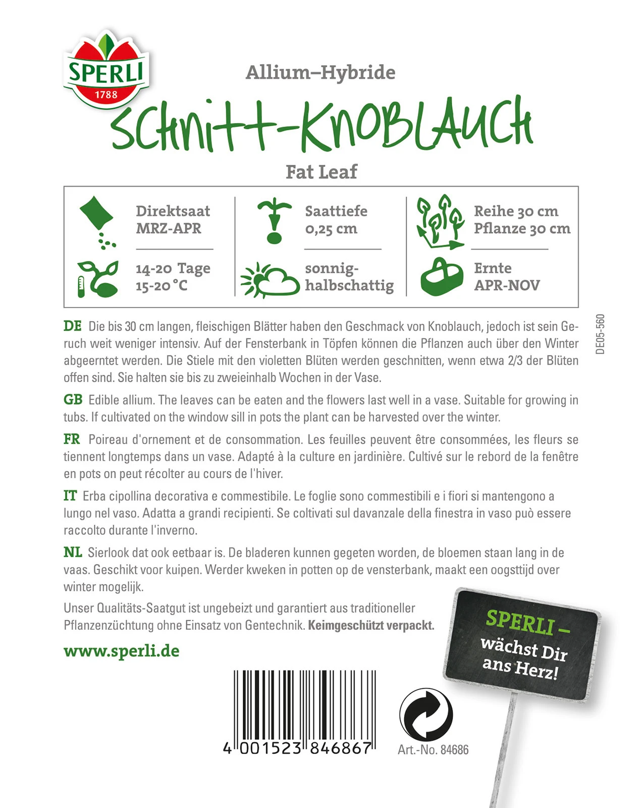 Die bis 30 cm langen, fleischigen Blätter haben den Geschmack von Knoblauch, jedoch ist sein Geruch weit weniger intensiv. Auf der Fensterbank in Töpfen können die Pflanzen auch über den Winter abgeerntet werden. Werden die Stiele mit den violetten Blüten geschnitten, wenn etwa 2 / 3 der Blüten offen sind, halten sie bis zu zweieinhalb Wochen in der Vase.