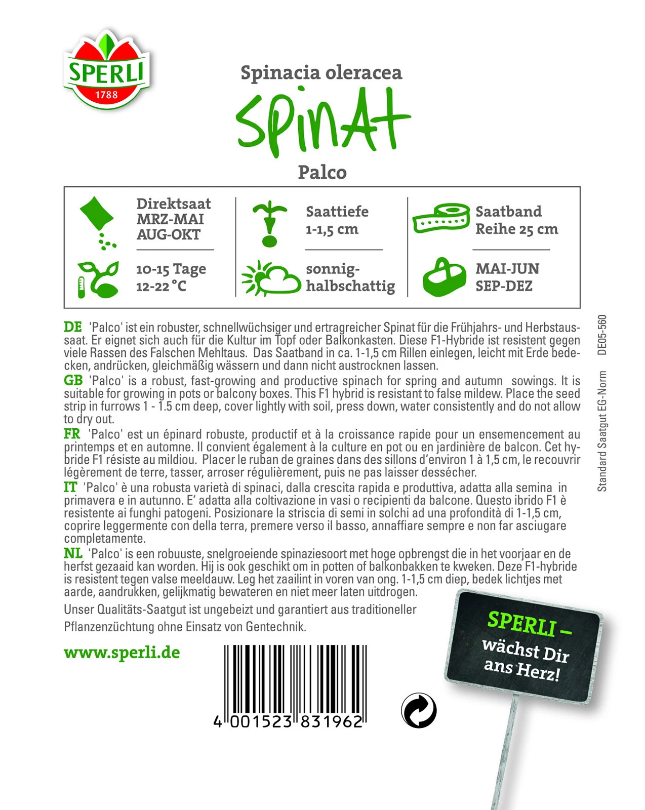 Spinat Palco F1-Hybride (Saatband) | Spinatsamen Von Sperli