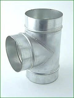 Metallenes T-Stück mit drei Anschlüssen (je ø 125 mm) zum Verbinden von Rohren und Schläuchen.