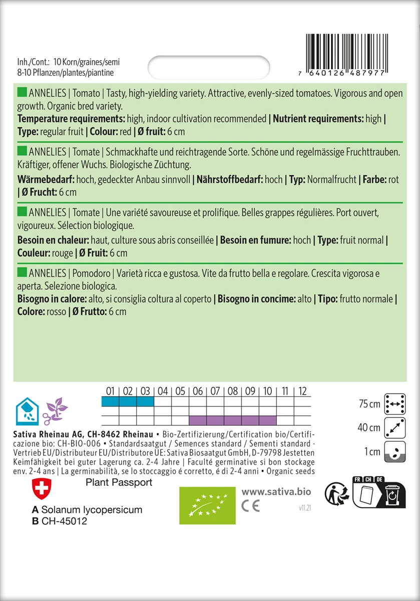 Schmackhafte und reichtragende Sorte. Schöne und regelmäßige Fruchttrauben. Ø6 cm