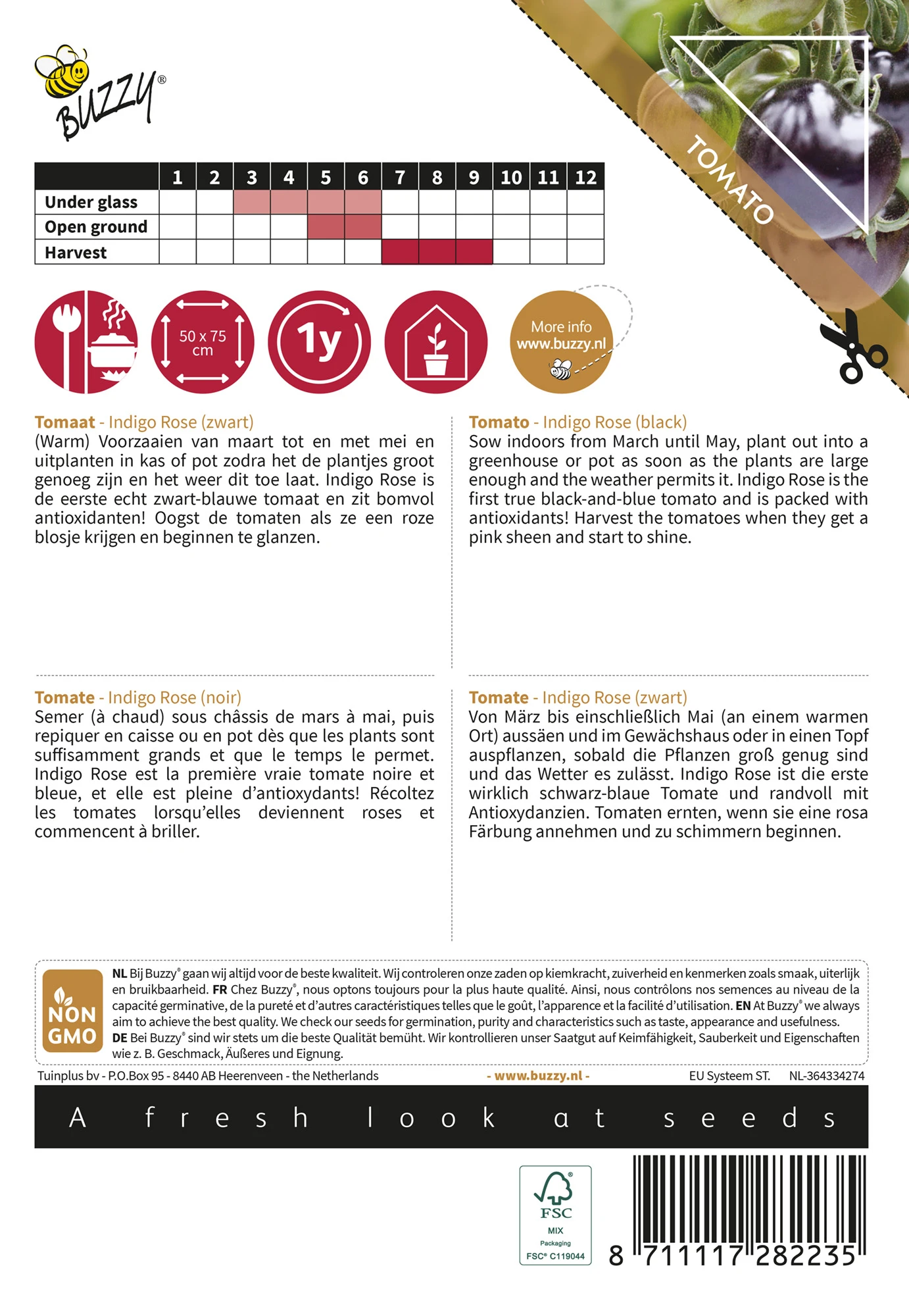 Indigo Rose ist die erste wirklich schwarz-blaue Tomate und randvoll mit Antioxydanzien. Tomaten ernten, wenn sie eine rosa Färbung annehmen und zu schimmern beginnen.