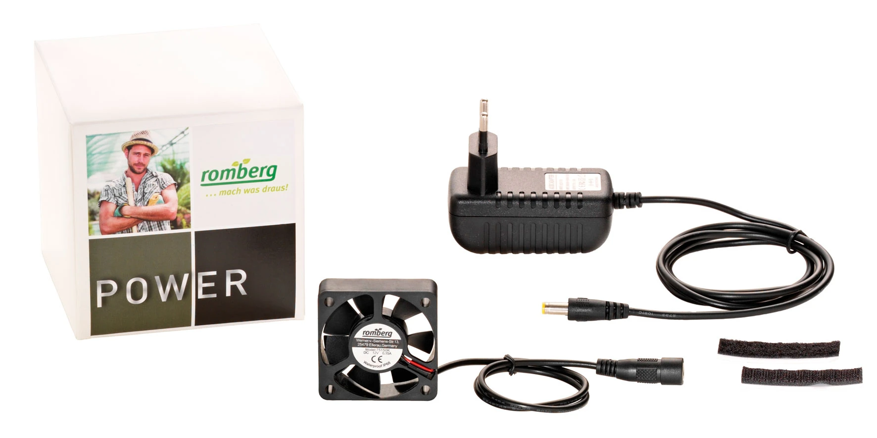 Technische Details: 5 Watt, DC 12V, 4.500 rpm, wasserfest IP68, Kabel 30 cm und Netzteil 120 cm