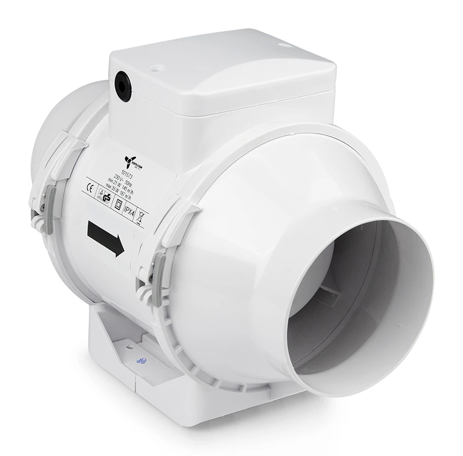 Der Ventilution Mixed In-Line Ventilator kombiniert die besten Eigenschaften von Axial- und Radialventilatoren. Sie sind perfekt für eine schallgedämpfte Be- und Entlüftung, welche unter hohem Druck, starkem Luftstrom und niedrigen Geräuschpegel arbeiten soll. Er besteht aus hochwertigem Kunststoff und kann über eine Wandhalterung oder einfach mit Gurten in der Growbox befestigt werden. Der Ventilator verfügt über zwei Geschwindigkeitsstufen.